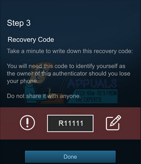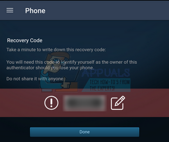 - After confirming your phone number, Steam will give you a recovery code. Write this recovery code down so you never lose it. Losing this recovery code can be very problematic as this ensures that you regain access to your account even when you don’t have Authenticator available and neither the correct credentials. Do not skip this step.