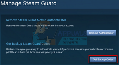 - Now you will be navigated to your Steam Guard settings. Here click on the button which says “Get Backup Codes”. This is present under the tab of Get Backup Steam Guard Codes.