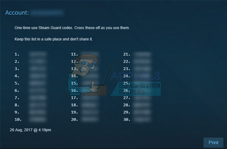 - Now Steam will display all the Backup Steam Guard Codes. You can print them and keep them in a safe place. Don’t forget to tick them off as they get used. Like we stated earlier, all of these codes are meant for only a one time use.
