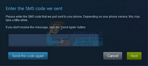 - Now Steam will send an SMS to your mobile which will contain a confirmation code. Enter the code on the screen to verify that the phone number is correct and click Next Some mobile phones may get their code in their spam folder. It may even take one or two minutes depending on your service. If you didn’t get your code for a while now, press the button which says “Send the code again”.