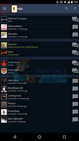 - Open your Steam application on your mobile. Press the menu icon present at the top left side of the screen to expand it.