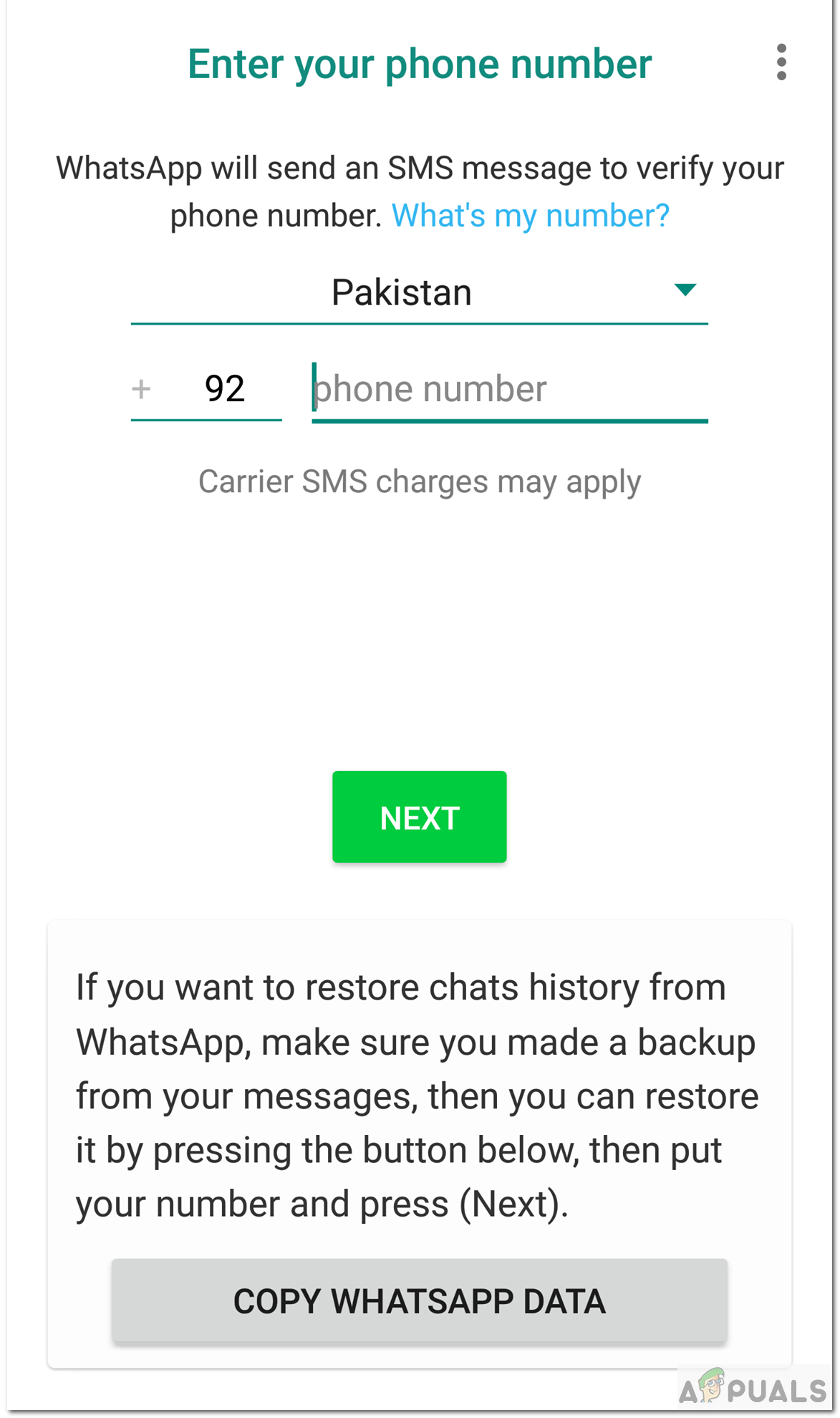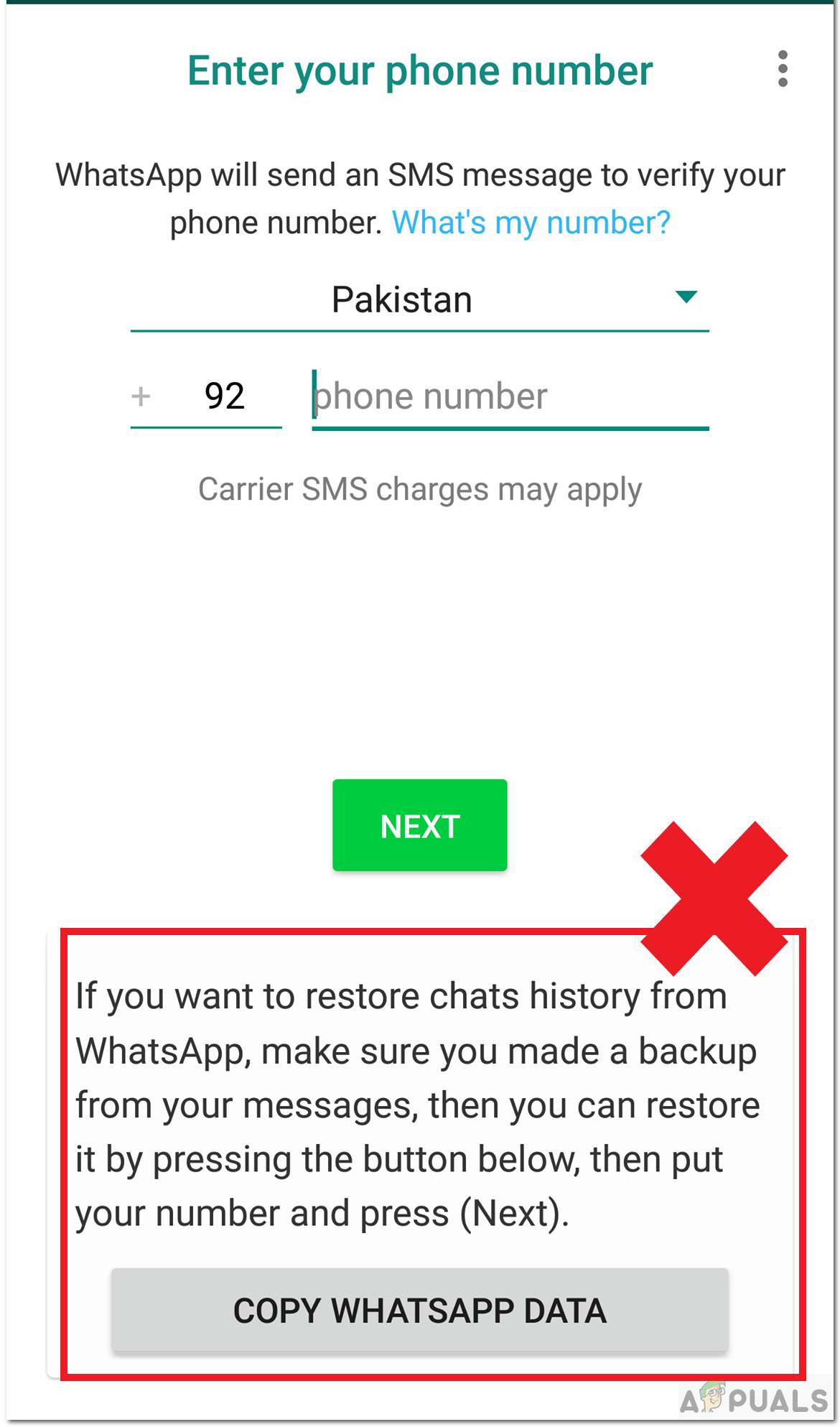 Account Registration - You should also not press the copy Whatsapp Data.