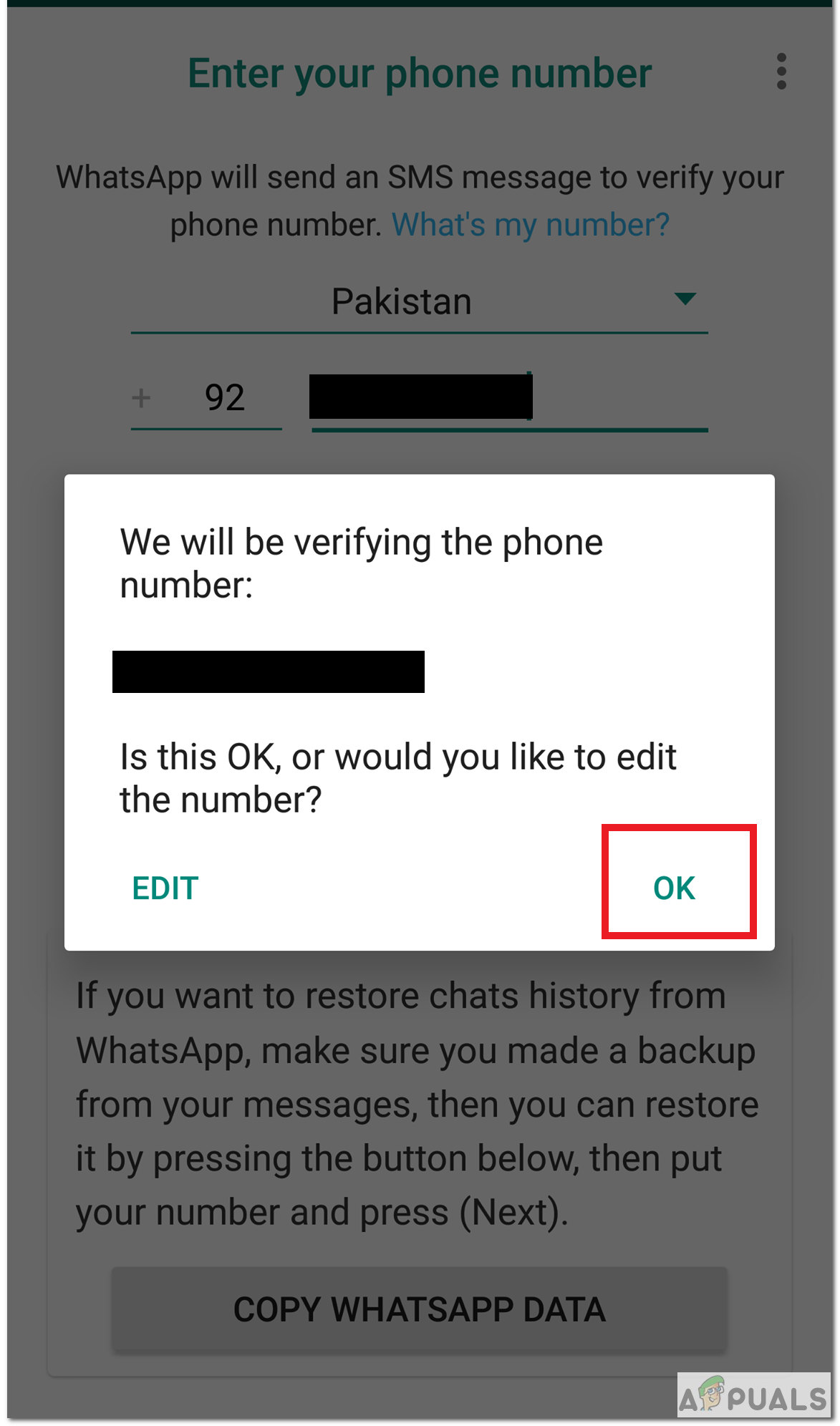 Copy Whatsapp Data - After providing the number, check if the number entered is correct.