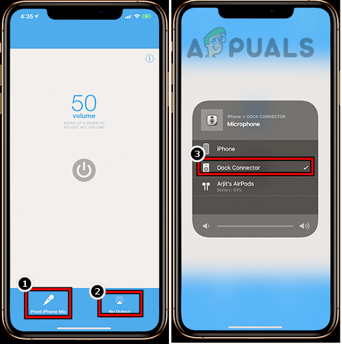 Select Dock Connector in the Microphone Pop Up of the Microphone Live App - Now launch the Microphone Live app and tap on the Power icon on the screen to enable Microphone.