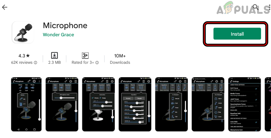 - Now open Microphone (by the developer Wonder Grace) and tap on Install.