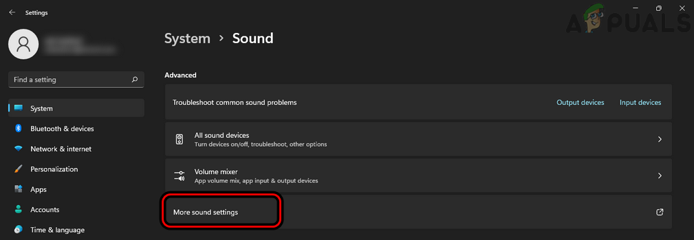 Open Sound in the System Tab of Windows Settings - Then scroll down till the end and then click on More Sound Settings.