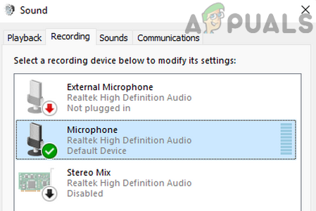Open More Sound Settings - Now, steer to the Recording tab and make sure the Microphone is set as the Default device.