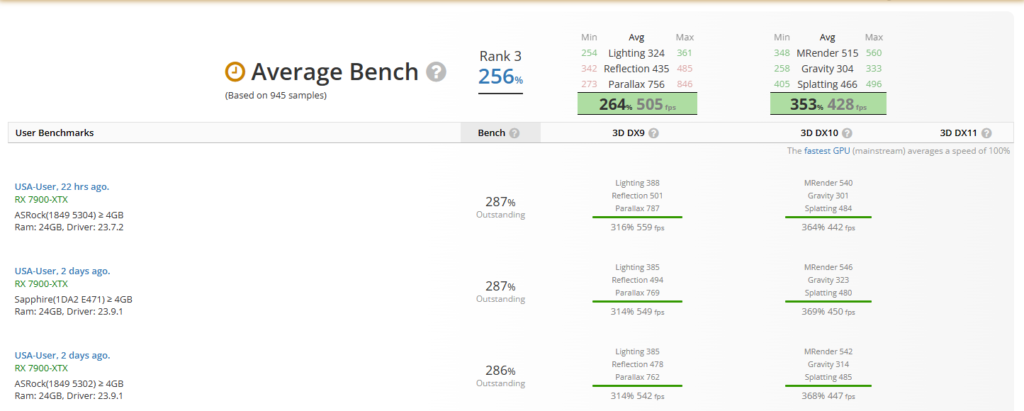 However, UBM classified this score as “atypical extreme,” suggesting that the GPU was unusually fast for its class. At of the time of writing, the highest achievable score on UBM for the 7900 XTX stands at 287%, with the average bench rating at 256%.