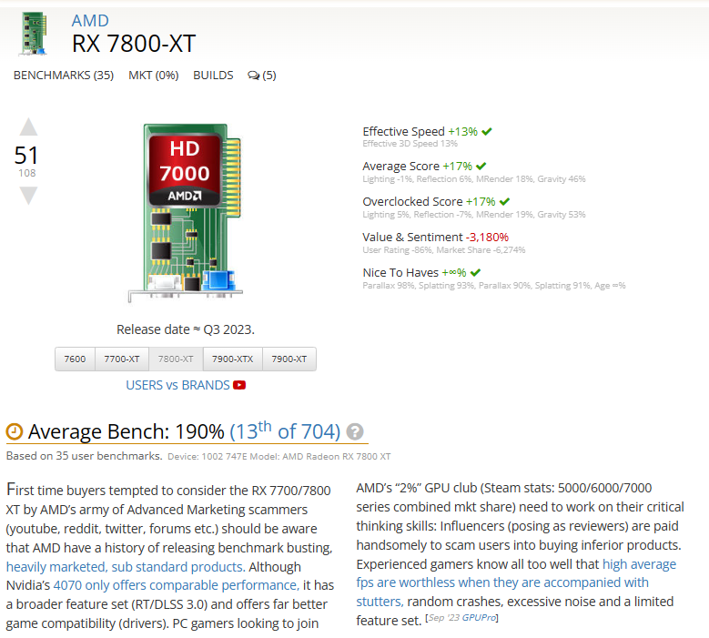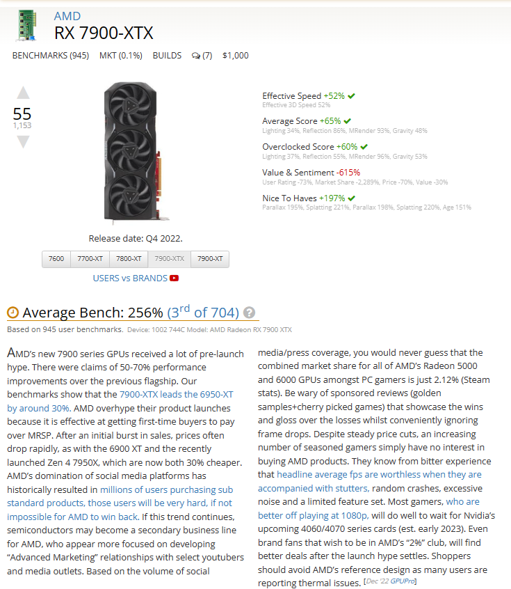 If this still isn’t enough to convince you that the site, while being an integral part of people’s significant financial decisions, is highly biased towards a specific company, there’s no definite proof of this, per se. But you don’t need proof; just take a look at the webpage for any of AMD’s flagship GPUs.