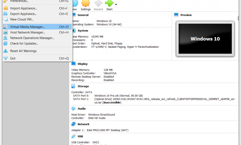 Using Virtual Media Manager in Oracle VM VirtualBox