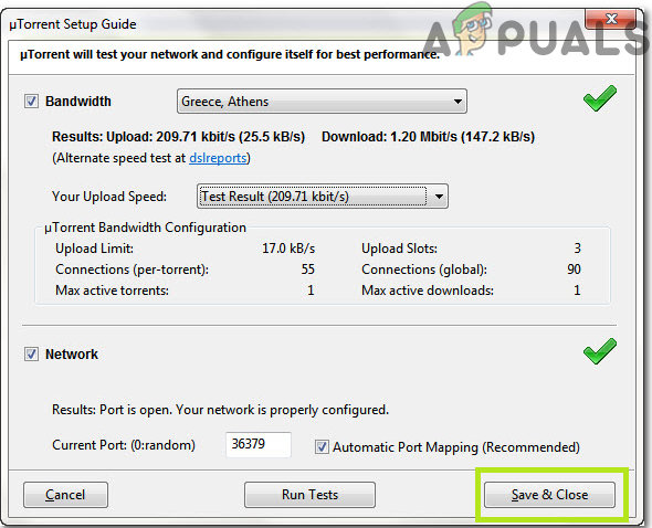 These tests will help uTorrent automatically configure your Internet settings, resolving any issues that are blocking torrent downloads.