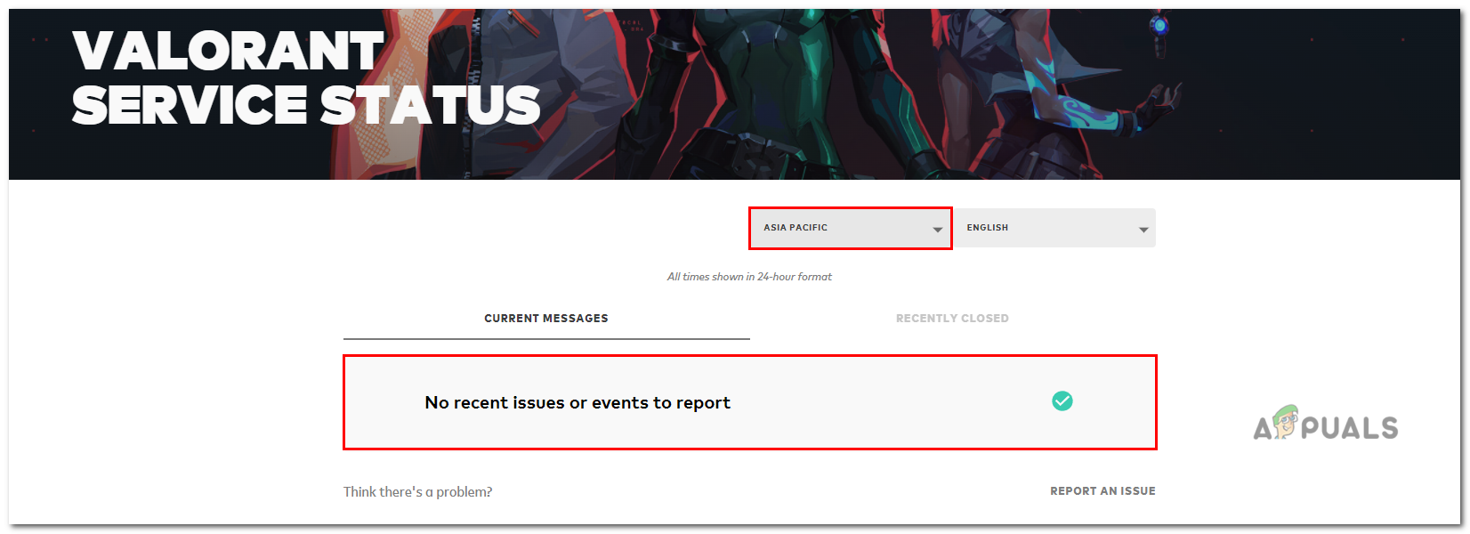 - First, you need to visit Valorant’s Official Server Status website https://status.riotgames.com/