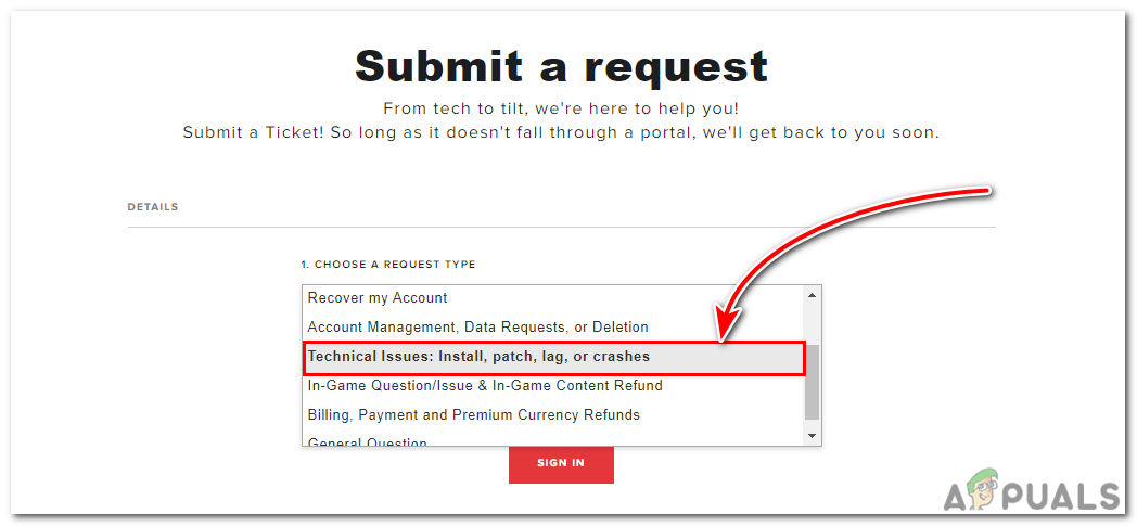 Click on Technical issues: Install, patch, lag, or crashes - Just fill in all the required information about the error you’re facing and then click on the submit option