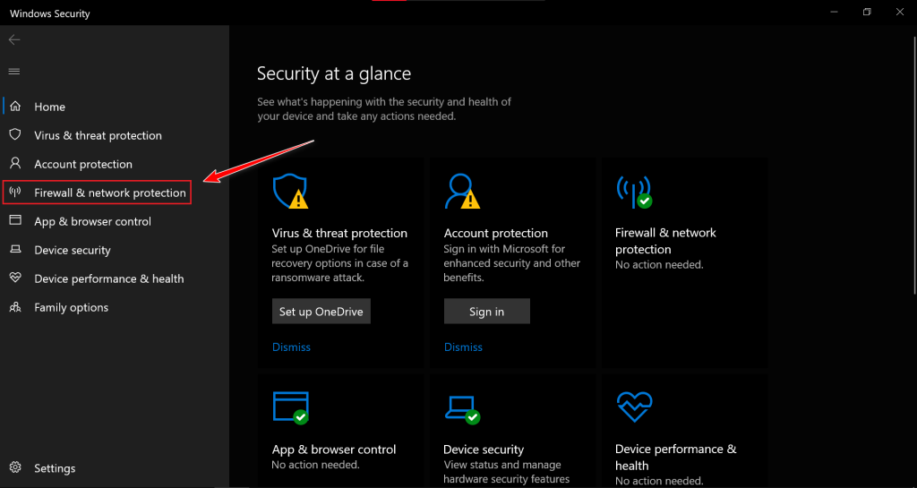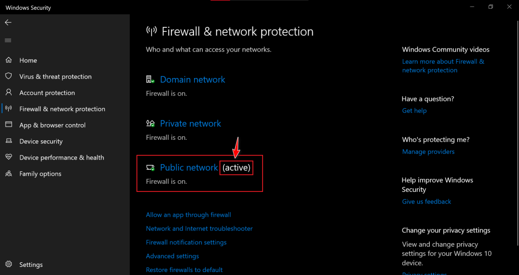 - Select Firewall & network protection.