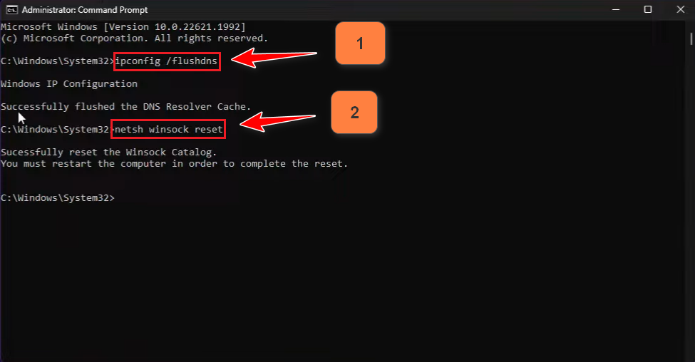 2. Flush DNS and Reset Winsock