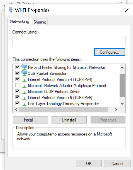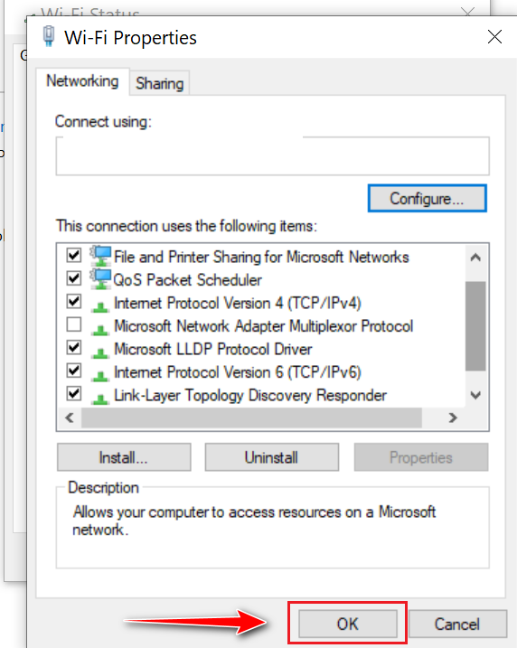 - If Internet Protocol Version 6 (TCP/IPv6) is checked, uncheck it and check Internet Protocol Version 4 (TCP/IPv4).