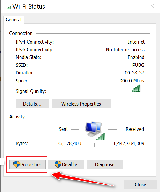 - In the new window, click Properties.