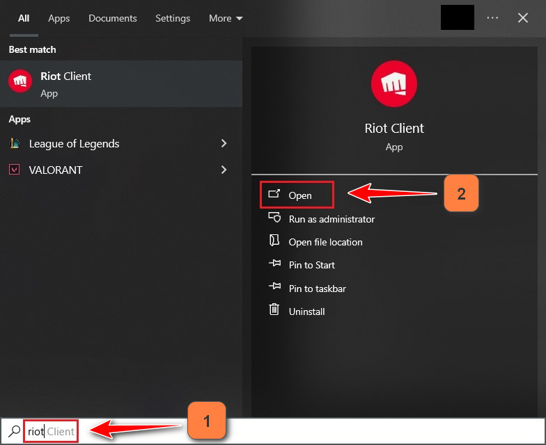 - In the Windows search box, type Riot Client.