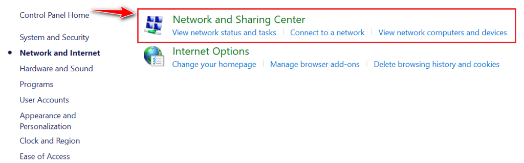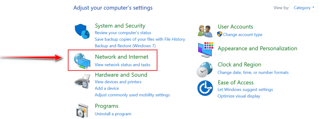 - Click Network and Internet.