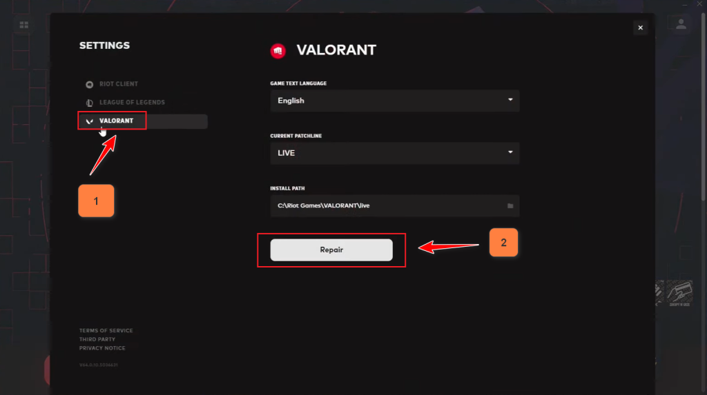 - Press the Repair button to start repairing the game files.