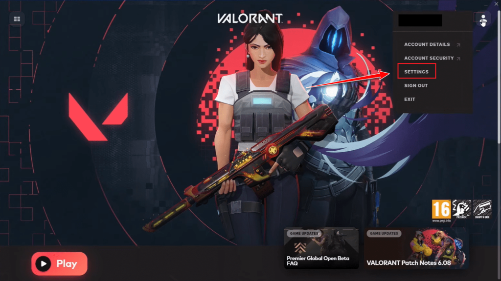 - In the Settings menu, click on the Valorant tab.