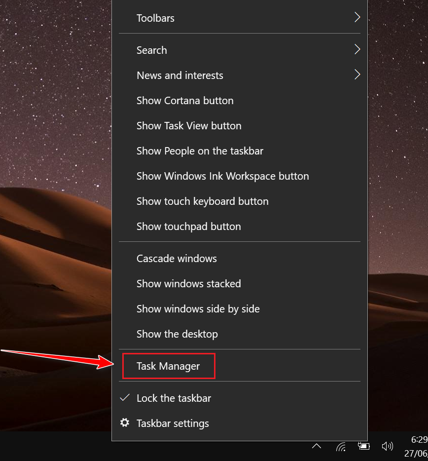 - Right-click on the empty space on the taskbar.