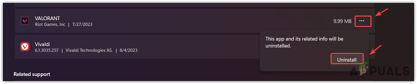 Search VALORANT, and click the three dots.- Click Uninstall twice to confirm.
