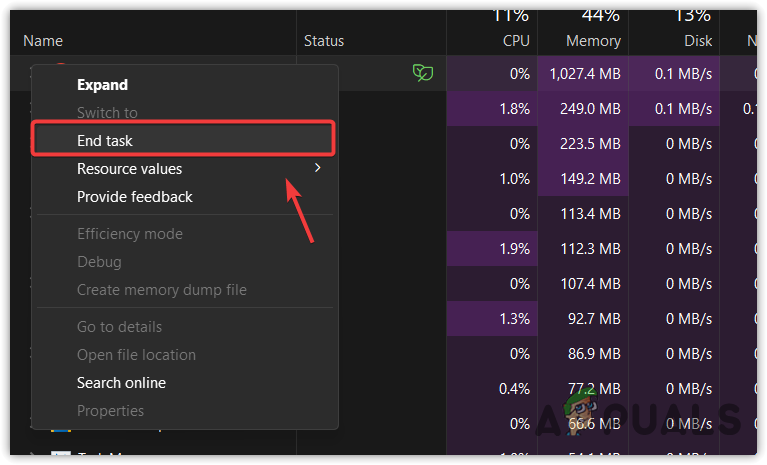 - Once the task manager is opened, right-click the VALORANT and select End Task.