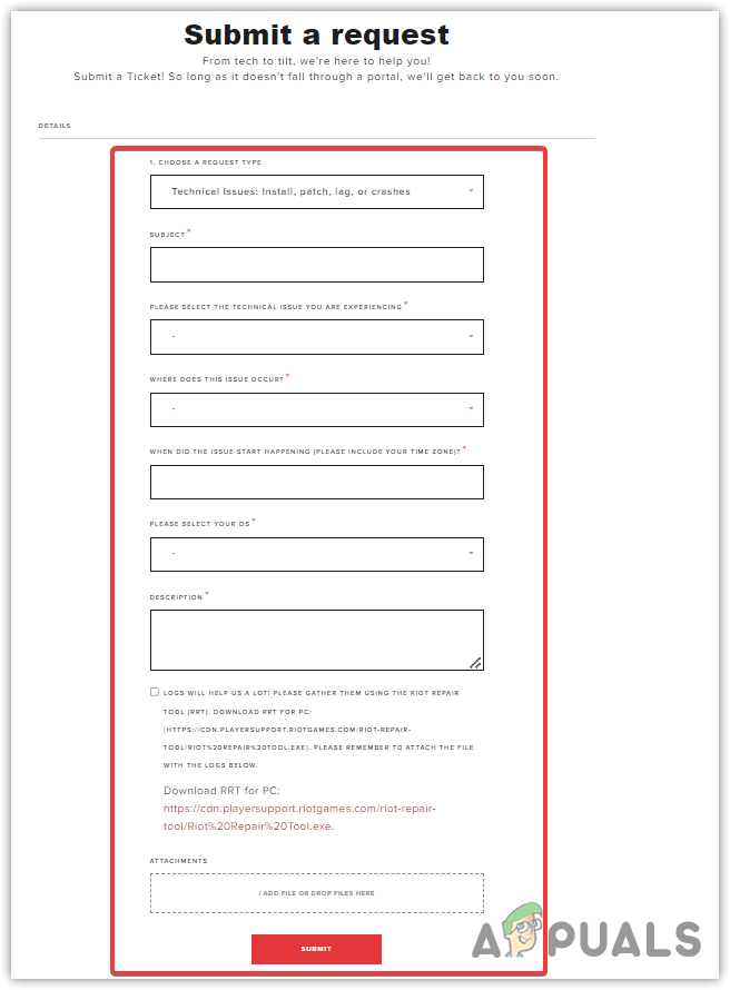 If you are still encountering the error message, you should try submitting a ticket. Since we have covered all the solutions, none of them worked. In this case, try contacting Riot Games support. One of their team members will contact you to get your issue resolved.