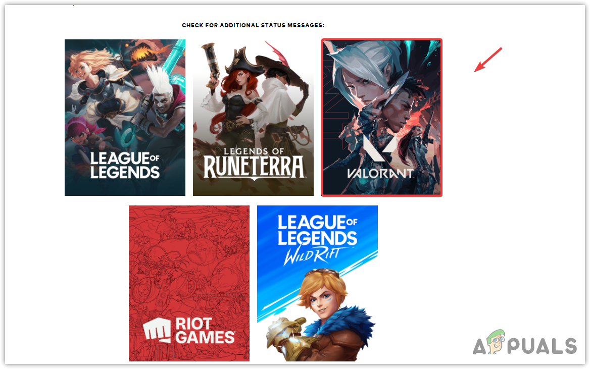 - Go to status.riotgames.com and select VALORANT from the listed games.