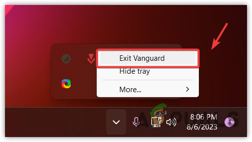 - Click the System Tray icon, right-click the Riot Vanguard, and click Exit Vanguard.