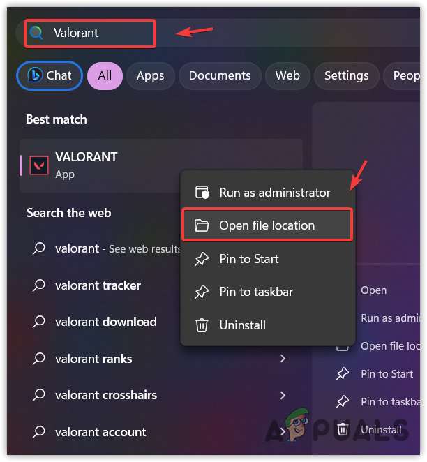 - Here, right-click VALORANT and select Open file location.