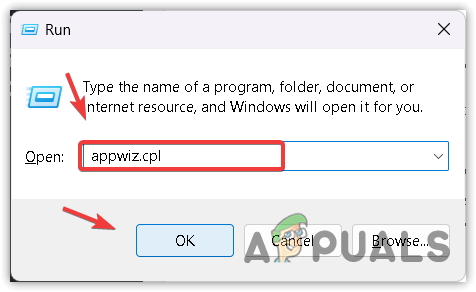 - Here, type appwiz.cpl and click OK to navigate into the Apps & features of the control panel.
