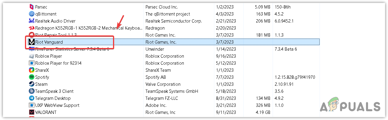 - Find the Riot Vanguard and double-click on it to uninstall.