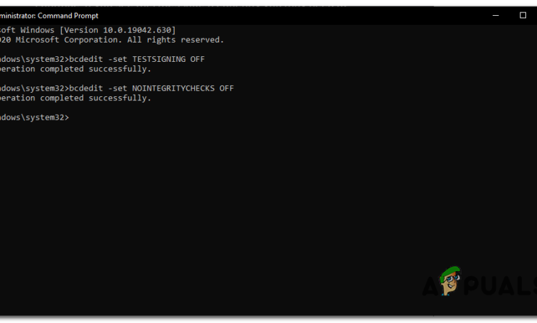 bcdedit -set NOINTEGRITYCHECKS OFF