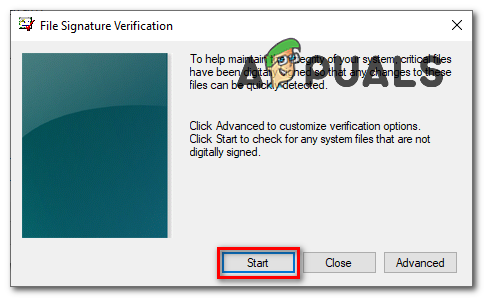 Opening Signature Verification - In the pop-up window for File Signature Verification, click “Start.”