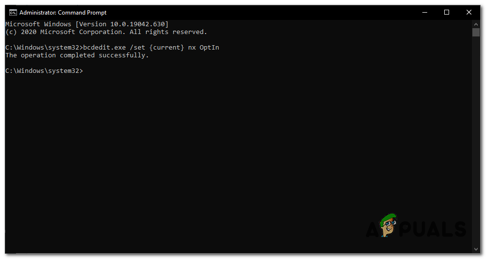 bcdedit.exe /set {current} nx OptIn