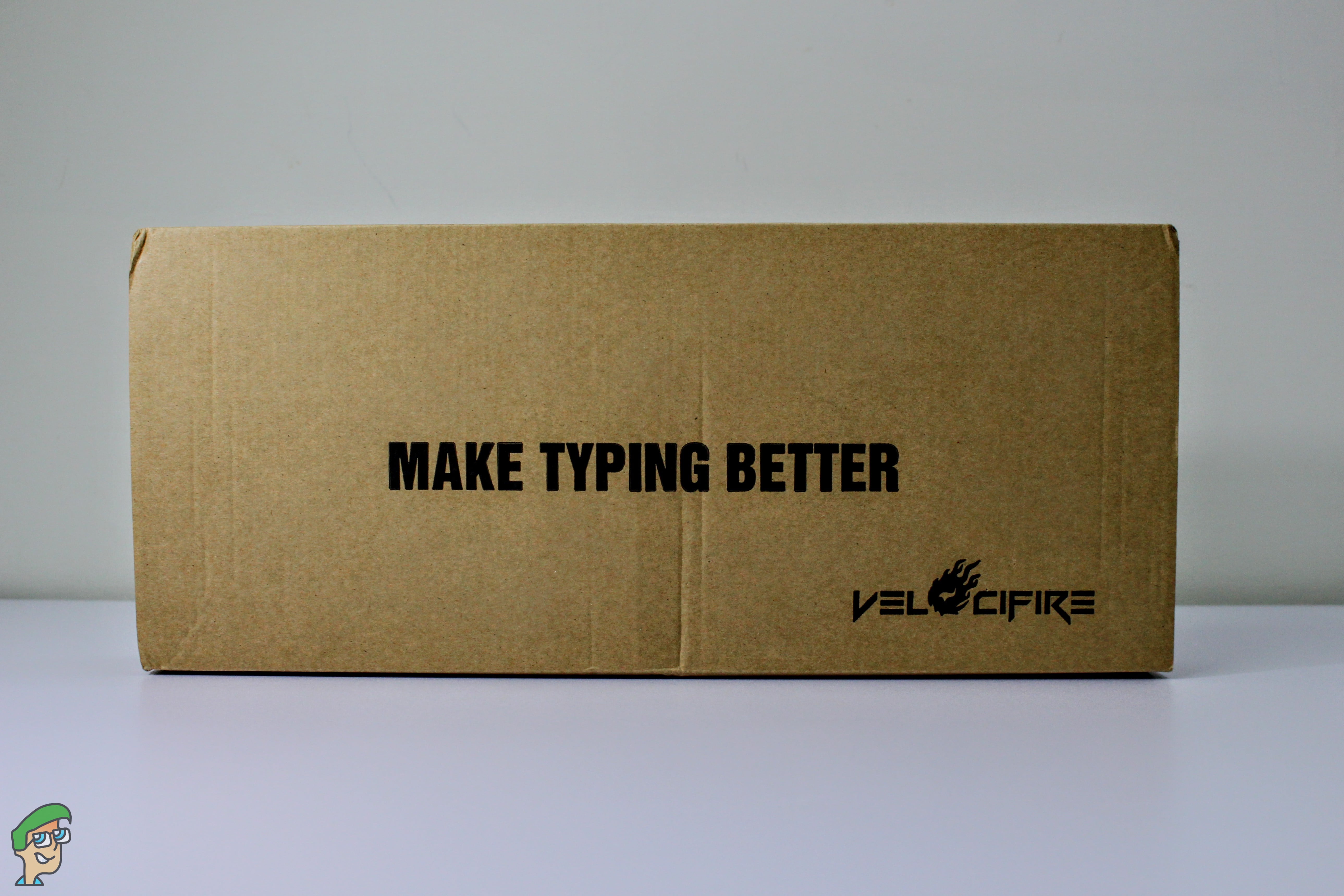 It comes in a simple brown cardboard box, without any flashy designs or logos. But the front prominently says “Make Typing Better” which is Velocifire’s slogan. There is also a prominent Velocifire logo at the bottom right. The back of the box just states the model number and their website. I can’t hate on the box too much, it does get the job done.