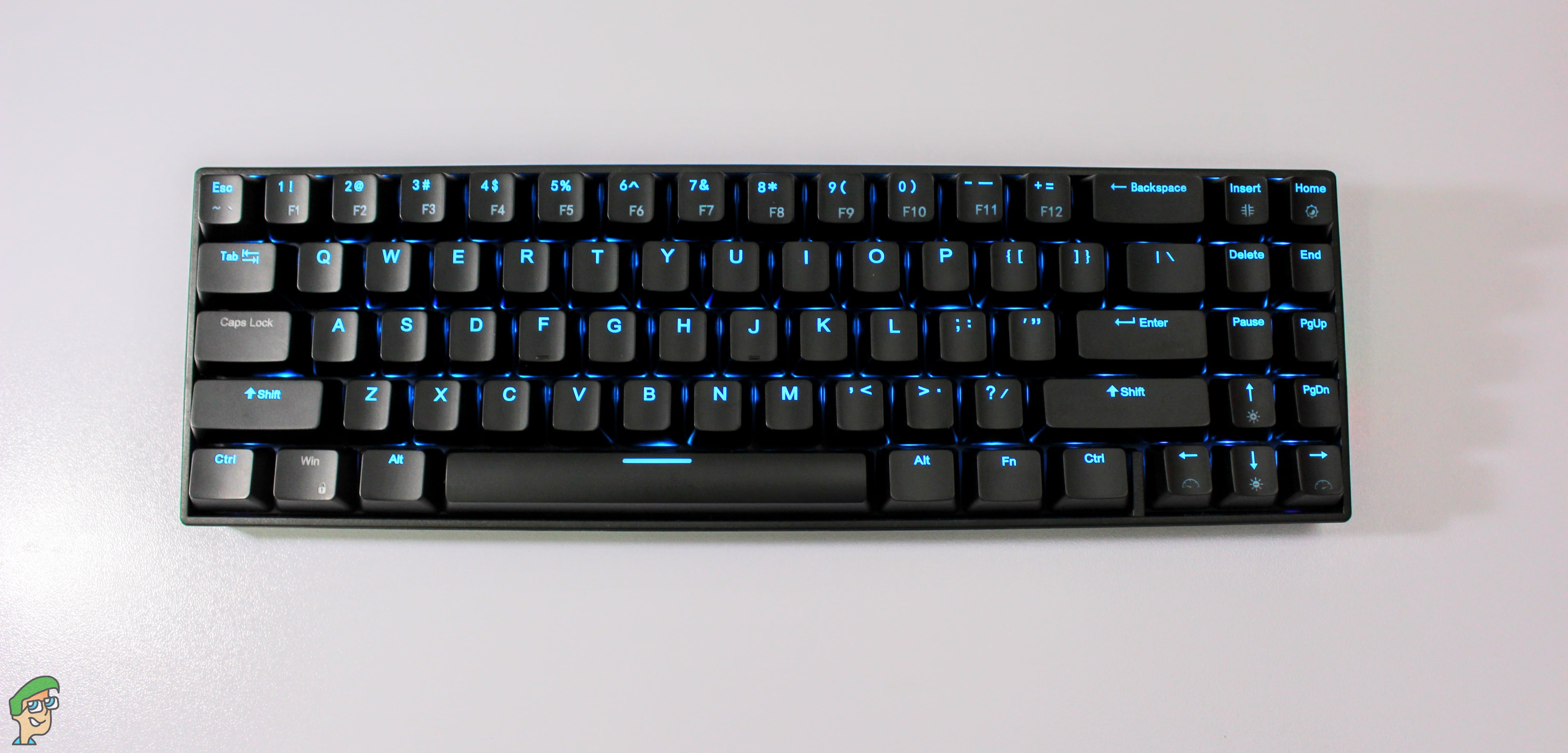Out of the box, the keyboard does a look a bit boring. Although it is a small and sleek keyboard, the all-black keycaps were pretty generic. But that issue quickly went away once I installed the K37 PBT keycaps. These look and feel absolutely amazing. It’s a shade of gradient blue, meaning the edges are a darker and the middle keys fade away to a lighter colour. Pair that with the icy blue backlighting, and we have a winner.
