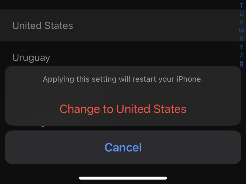 Changing the region to the United States - You will be prompted to restart your device when the setting is changed.