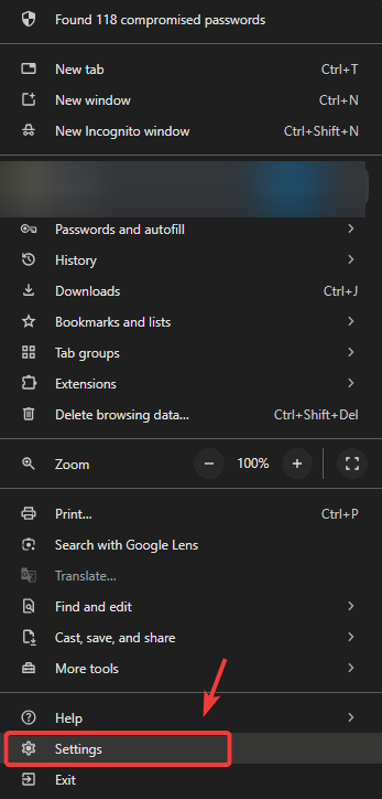 - Select Settings from the list of options.