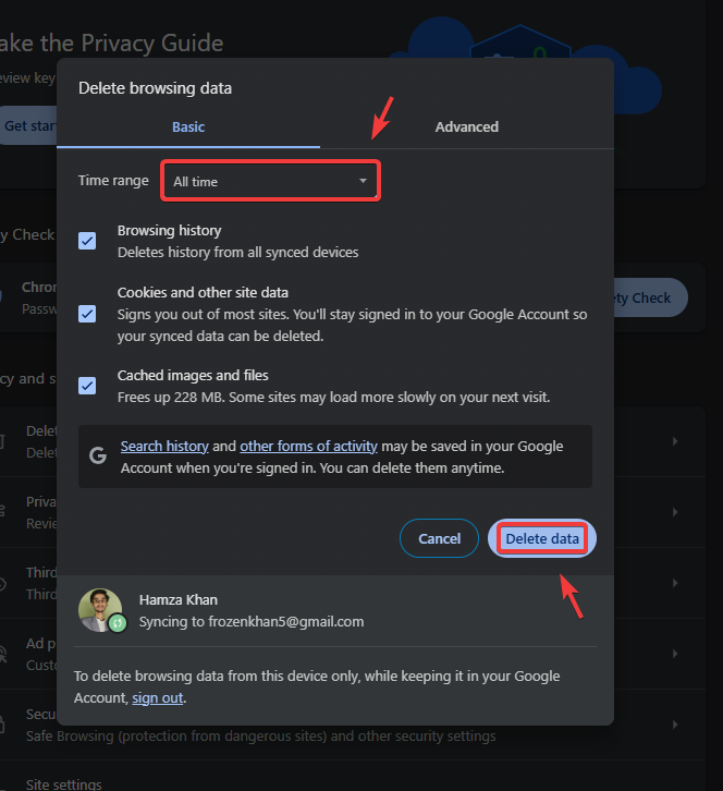 3. Clear the Browser Cache Data