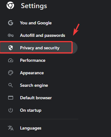 - Then, select Privacy Security and click Delete Browsing Data.