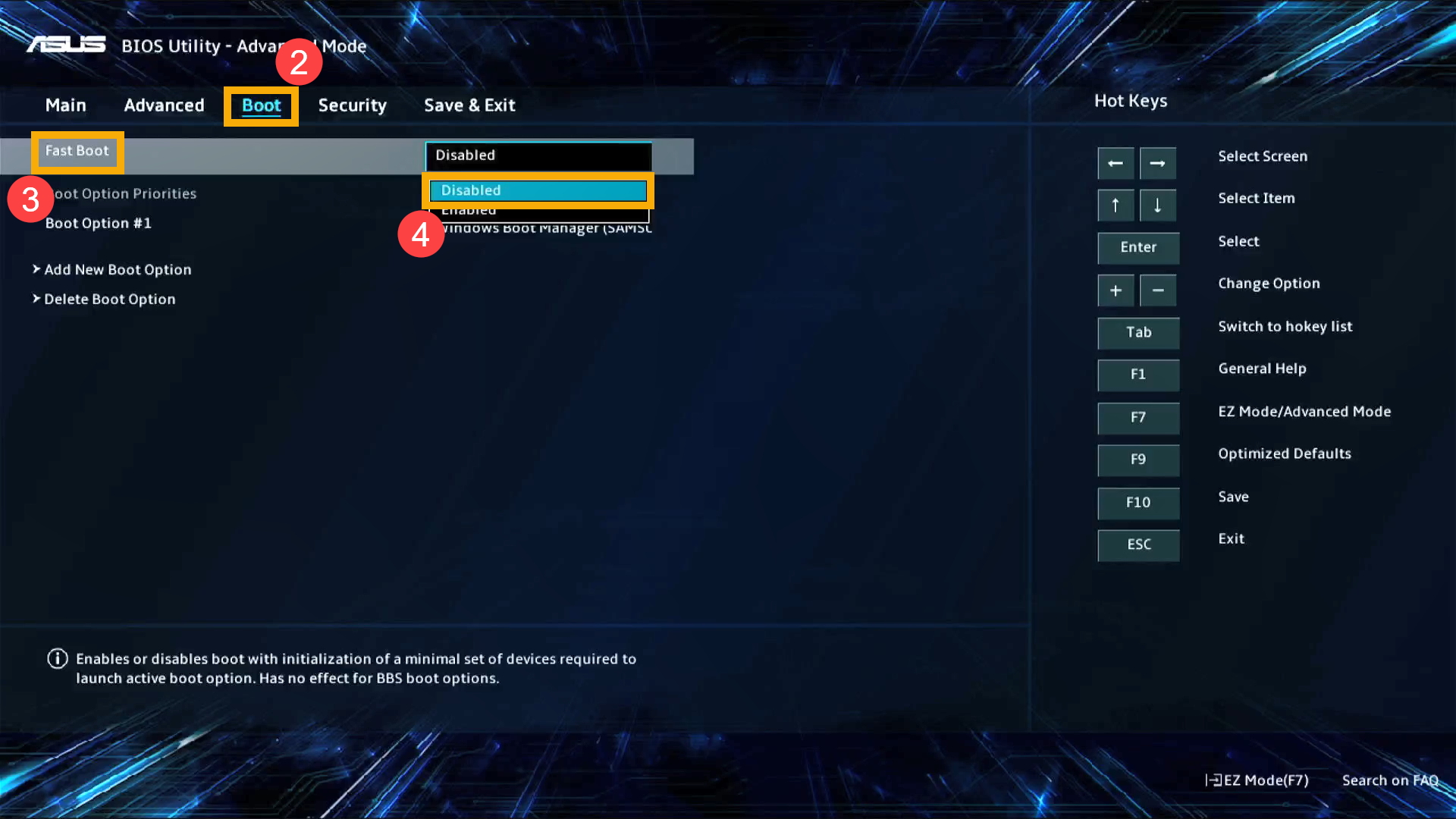 3. Disable Fast Boot in BIOS