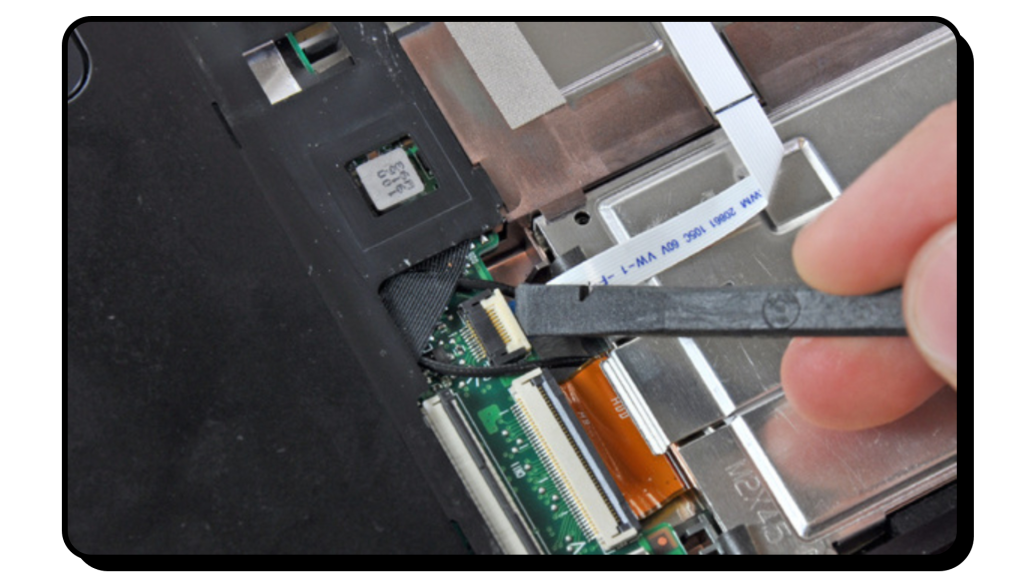 Warning: It isn’t recommended to service your laptop’s screen yourself, especially if your device is under warranty or you lack sufficient repair knowledge. If you’re still willing to proceed, you’ll need to remove the faceplate and detach the old ribbon cable.