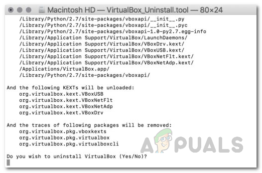 - This will open up a new terminal window where you will be asked if you wish to proceed with the uninstallation. Type Yes in the terminal window to complete the removal.
