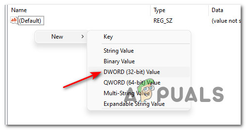 - Next, move over to the right-hand section of the screen, right-click on an empty space and choose New > Dword (32-bit) Value from the context menu.
