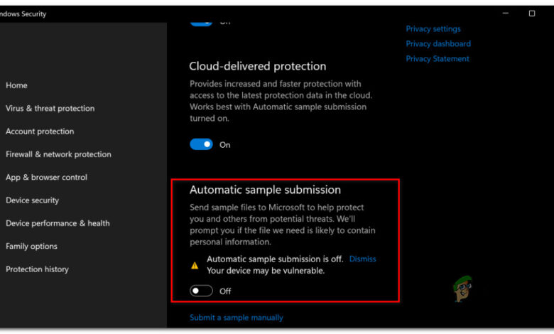 Fix: Virus Automatic Sample Submission Turns Off After Each Startup on Windows 11