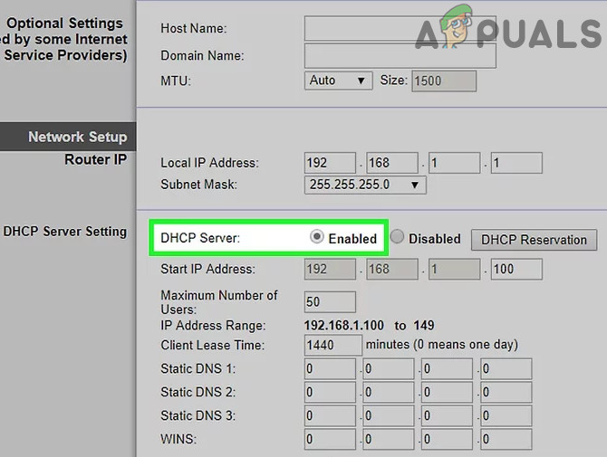 - Enable DHCP. If it is already enabled, disable it, then re-enable it.