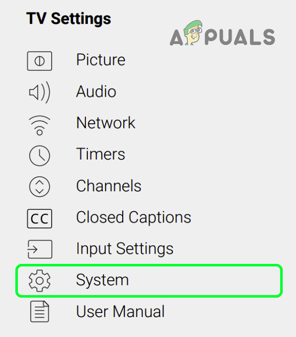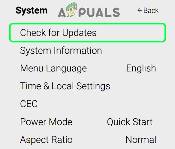 Open System in the Vizio TV Settings - Now select Check for Updates and let the Vizio TV check for its updates.